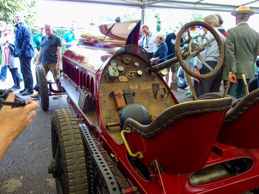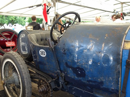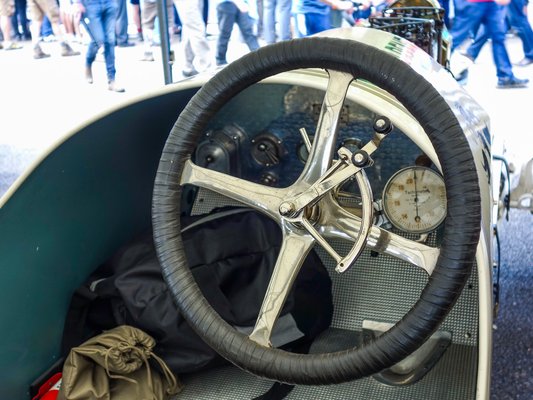 Az egyik, hogy amióta megvan, nagyon úgy tűnik, csak a szükséges karbantartásokat kapta, száznégy év versenyeinek minden nyoma kitapogatható rajta. A másik: ez volt a legendás sebességi rekordpilóta, Malcolm Campbell első Bluebird-je a hasonnevű későbbiek hosszú sorában. Campbell ezzel a kocsival nyerte meg a háború után újranyitott brooklands-i pálya első versenyét 1920-ban, majd ő is felállított vele néhány rekordot.