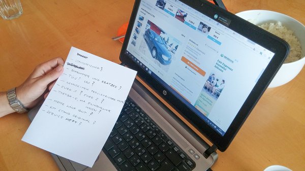 Mire ezt végiggondoljuk, kiderül, hogy mi vagyunk az első érdeklődők a húsz perce feltöltött hirdetésre, de nem a kereskedő nyakas, nem rakja félre az autóit holmi habókos magyaroknak, még akkor sem, ha német segítővel megtámogatva kérik. Tanja nem adja fel, rekonstruáljuk később, kialkudja a bő félnapig tartó időszükségletét, és ebbe végül belemegy a fickó, akinek a mai napig nem tudom a nevét.