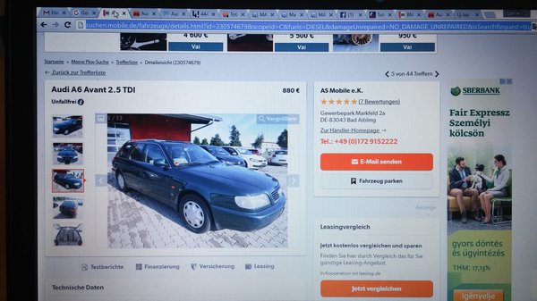 Mindez még kevés a sikerhez, ezért hívjuk segítségül Göbi barátnőjét, Tanját, aki csak nevetgél, amikor a konyhaasztalnál a monitorra meredve újabb idézetek felolvasásával szórakoztatjuk egymást. Tanja Dél-Németországból származik, de több mint tíz éve egy Pest-környéki faluban él. Akkor döntöttem el, hogy tőle kérek segítséget, amikor több levelemre sem érkezett válasz a mobile.de saját üzenetküldő rendszerén keresztül. (A magáneladók nem írnak közvetlen e-mail címet.) Így szalajtottam el egy családi kedvencnek titulált, illetve egy másik, idős tulajdonostól származó (rentnerfahrzeug) Audit. Kicsit megcsömörlöttem.
