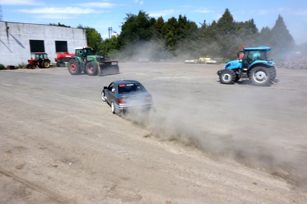Vittünk autót is, hogy lássuk, hogyan lehet elférni, ha már ott voltunk, akkor meg is autóztattuk azt, aki arra járt, a csacsi bírja a kiképzést, nem lesz gond. Ami eltörik, azt megragasztjuk és megyünk tovább. Nyilván a terület még messze nem a felkészített állapotát mutatta, a pálya nyomvonala is sokkal érdekesebb lesz az itt látott nyolcasnál (abban sok kihívás nincs), de a próba annyit elárult, hogy igen, amit elképzeltünk, azt meg lehet csinálni, egy igazán extrém, de helyenként akár lendületesnek is mondható ívet lehet autózni, bónusz adrenalinbombával. Mobilgumis lesz, a hangárban – árnyékban – profi büfé sörpadokkal, a mentő is készenlétben áll, a beléptetés megoldott és mivel a résztvevők száma elég limitált (30), ezért a várakozás is minimális lesz, ha minden jól megy, akkor gyorsan pörög majd a program. Az Axiál pedig mögé teszi mindenét, amije van. Traktorok, emelőkosarak, mindenféle gépek. Természetesen az ingyen kilátogatók így a magasból is megnézhetik a mókát és szerintem a gyerekek sem fognak unatkozni. Most pedig a tények.
