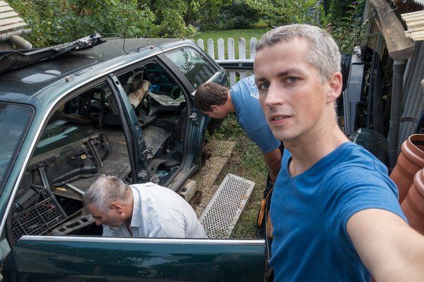 Velem volt Péter, a frissen talált Facebook-ismerős, aki a fény felé emelt spiáter-alkatrésszel üdvözölt, amikor visszatértem a szerelés után. Az ajtóátültetési folyamat utolsó pillanatáig már együtt meneteltünk. Velem volt Laci, aki lelkesen emelte vállára az autónk sorsát és néhány tanács erejéig velem volt megannyi A6-rajongó is, akikről ugyan semmi közelebbit nem tudok, de az első kérésemre próbáltak hozzáadni ezt-azt az ügyemhez. Ez az öreg autós hobbi és a közösségi média legszerencsésebb találkozása, így máris sokkal szebb és vállalhatóbb a Rulettkerék-Audi külleme.