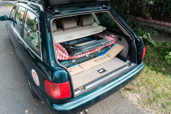 A pokróccal és a gyakorló kombiautósként mindig nálam lévő hálózsák-sátormatrac kettősével kibélelt csomagtérbe fektettük a két üres lapot. Egyik sem hibátlan, de színűk nem fakult el a mi autónkétól, így pusztán a cseréjükkel rengeteget javíthatunk a Rulettkerék-Avant megjelenésén.