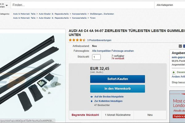 Miután a vásárláskor elhatároztam, hogy a műszaki állagmegóvás mellett, kezdek valamit az autó külsejével is, visszaverődtem egy magyar Audi-Volkswagen bontóról. Szinte kikacagtak, amikor a 100/A6 alkatrészei felől érdeklődtem. Olyasmit egyre kevesebb helyen tartanak, mert mindenki az újabb, de silányabb C5-ös szériához keres holmikat.
