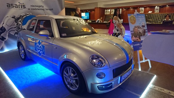 Készítettem róla néhány képet, és videóra vettem egy monitoron folyamatosan futó promóciós anyagot is. Egy kevés információt is sikerült megtudnom róla. Az 1950-1960-as években Lengyelországban nagy népszerűségnek örvendő Syrena típusú gépjármű, ma népszerű szófordulattal kifejezve, rebootolása a kiállított modell. Mindössze négy darab prototípus (amit nem győztek hangsúlyozni) készült belőle.
