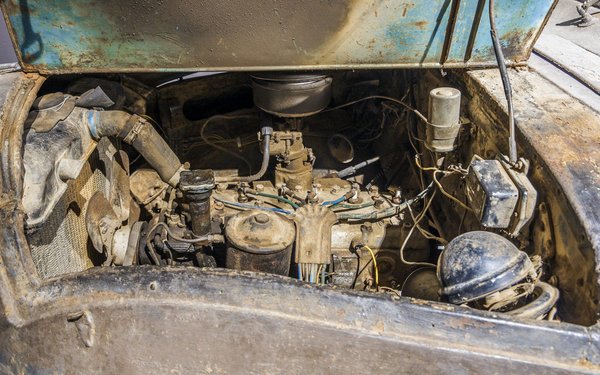 Azt félretéve, hogy az utastér berendezéséből említésre sem érdemes az a pár tétel, ami fennmaradt – leginkább az azt határoló lemezek – a karosszéria és az alváz meglepően épen úszta meg ezt a nyolc évtizedet. Alul minden eredeti, a karosszéria paneljeinek java részét sem cserélték még, csak a fellépőket és az ajtók alját látta lakatos, ő viszont erősen felöntött a garatra munka közben. A motortér oldalán megvan a három jellegzetes domborítás, amin díszlécek is laktak anno, az ajtók teteje eredeti, a farrész szinte hegesztés nélkül menthető lenne, csak a Volga M-21-es rendszámvilágítást kéne levenni róla.