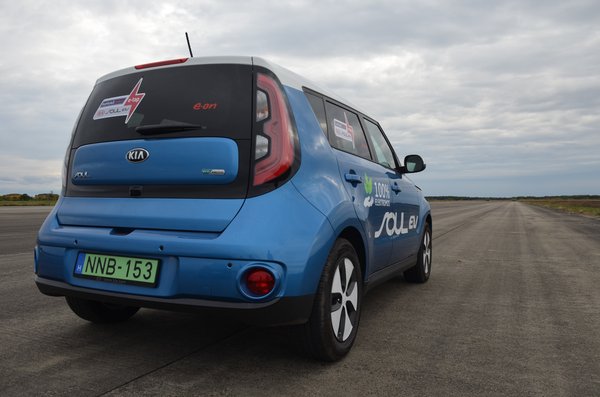 Számolgathatnánk a kWh-kat, hogy akkor mennyit is jelent az akkumulátoroknak plusz öt kilométer hatótáv, de szerencsére a Soul EV pillanatnyi fogyasztásmérője sem csak a felhasznált energiát mutatja a központi kijelzőn, de azt is, ha mínuszos a szám. Itt pedig most mínusz lesz, míg le nem megyünk erről a hibátlan betonpályáról. Csak bírja a technika.