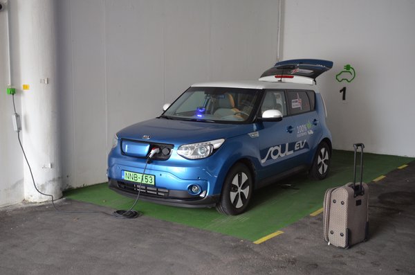 Ha jól rémlik, az uzsi idő tíz órát jelent, szóval úgy másfél óránk van, hogy időben odaérjünk a klinikára, és megmentsük a gyerekeket az éhségtől. A szállodai hálózati töltő tíz óra alatt felhúzta 95 százalékra az akksit, amire 154 kilométeres hatótávot kalkulált a Kia. Ennyiből egy lendületből felvesszük és leadjuk a cuccot. Tölteni utána fogunk, a fővárosban úgy is nagy lesz a luxus chademóból.