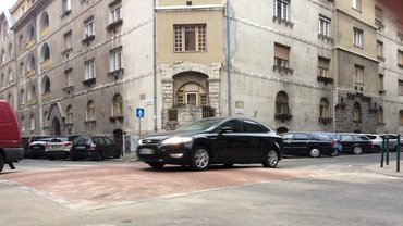 A bringások és gyalogosok helyzete máshol sem fényes, hiszen a Szent István körút közelében szinte minden mellékutcában az orrukat mélyen a járdára lógatva parkoló autókat látunk. A Pannónia utca és a Raoul Wallenberg utca találkozásánál egyszerre látható minden, ami miatt ma baromi kellemetlen és veszélyes az Újlipótvárosban közlekedni. Néhány méteren belül a járda felét elfoglaló Bubi bringatároló, két sorban, vészvillogóval parkoló autók és az egész napos útszűkület miatt a bringasávon kígyózó kocsisor.