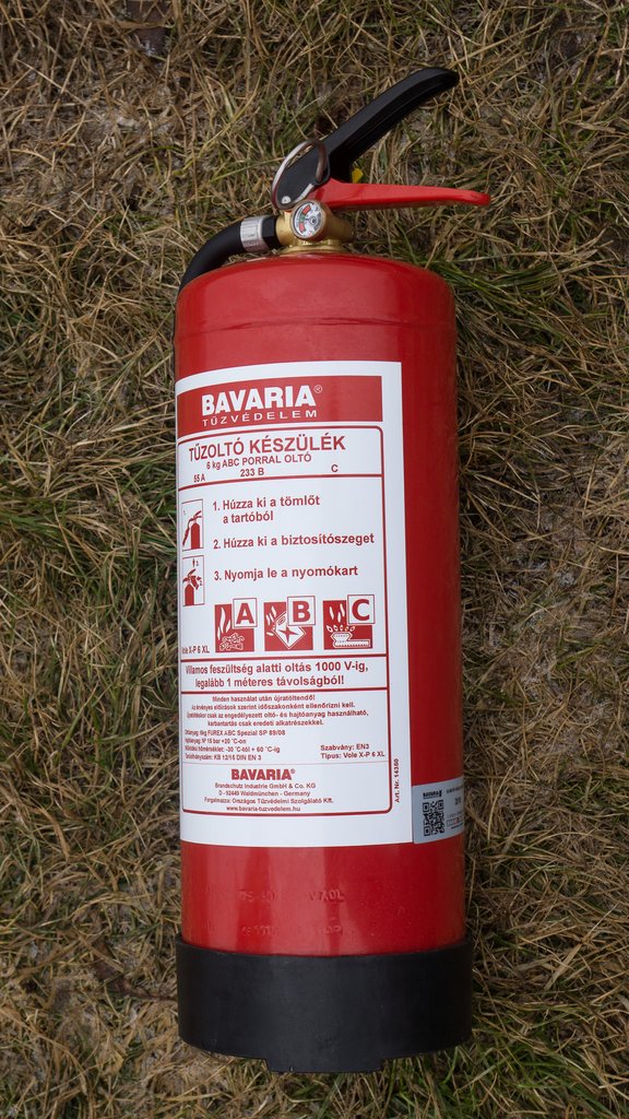 A, B és C tűzosztályú tüzek oltására alkalmas, szabványos, por oltóanyagú, hordozható tűzoltó készüléket kell készenlétben tartani.