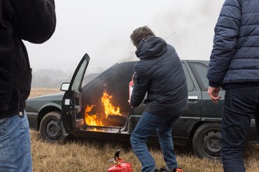 Az autótüzek változatos helyről és okból törhetnek fel, de az esetek többségében az elektromos rendszer hibájára vezethetők vissza. Mi is a műszerfal alól, a biztosítéktábla környékéről indítottuk kis teszt-tüzünket, amit Karotta sikeresen megfékezett a cikk elején említett egykilós porral oltóval. A mi példánkban, amíg csak a műszerfalat nyalogatják a lángok, és van nálunk oltóeszköz, van esélyünk, de ha már elérte a kárpitot a tűz, inkább meneküljünk, a kis poroltókkal esélytelen a harc.