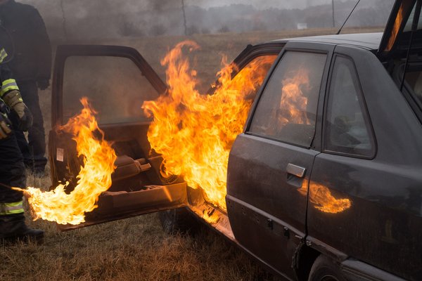 Ha a motortérben kezd el égni valami, ne nagyon nyitogassuk a motorházfedelet, mivel azzal garantáltan felszítjuk a tüzet. A gyújtás levétele után csak résnyire nyitott géptető alá próbáljuk beküldeni az oltóanyagot, miközben persze mindenképp hívjuk a tűzoltókat is. Ha már intenzívebben ég a kocsi (főleg a beltér), nem érdemes hősködni, oda már komolyabb felszerelés kell, ami többnyire csak a tűzoltóknál akad. Ilyenkor csak annyit tehetünk, hogy távolabb megyünk az autótól, nem is azért, mert felrobbanhat, inkább mert cianidos gázok szabadulhatnak fel égés közben.