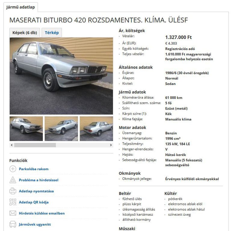 Elkezdtem hát magam szoktatni a gondolathoz: Maseratim lesz. Na jó, nem teljesen az enyém, de ez akkor is egy Biturbo. Már csak a vezetőség bólintása hiányzik, és már jöhet is haza az autó. A rend kedvéért minden nap megnéztem még a hirdetést, az egyik szombaton viszont már nem találtam. Biztosan csak lejárt – gondoltam először -, hiszen ki venne meg egy ilyen szíváshalmazt rajtunk kívül? Vártam egy-két napot, de semmi, így telefont ragadtam. – Szia! Néhány napja voltunk megnézni azt a Maser... - ELKELT!