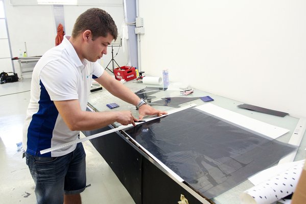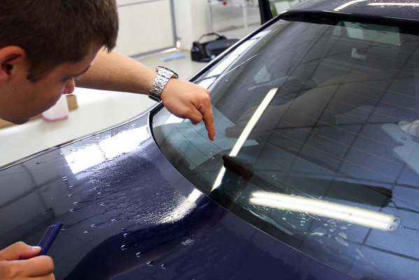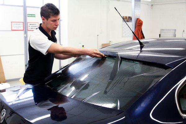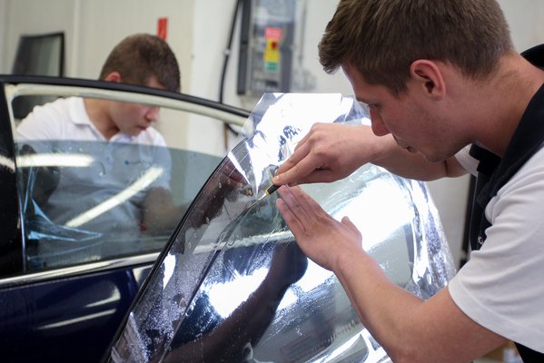 A fóliázás az üvegek alapos letisztításával kezdődik. Ez kívül-belül szükséges, mert ugyan a fóliát belülről ragasztják fel, azonban a felrakás közben a szakembernek látnia kell a hibákat-légbuborékokat, nem zavarhatja a koszos üveg. A takarítás után kiszabják a fóliát, ez történhet sablonok alapján, vagy közvetlenül a kocsi üvegfelületeit használva. Úgy ügyeskednek, hogy a levágott darab körülbelül minden irányba 1 centiméterrel legyen nagyobb. A felesleget a pontos rászabásnál vágják le.