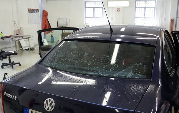 A fóliázásnál van pár olyan rész, ahol tudomásul kell venni, hogy ha nem is lesz csúnya, de fura. Mégpedig a fixen beragasztott oldalablakok szegélyénél, ahol látható a gyárilag „pöttyözött” perem. Ott kicsit fehéres lesz a szegély, mert ezek a „pöttyök” eltartják a fóliát. A biztonsági fóliák felrakása annyiban más, mint a fényszűrőké, hogy az anyaguk vastagabb, így előfordulhat olyan trükkös domború (vagy homorú) formájú hátsó szélvédő, amelyre nem lehet szépen felilleszteni: mivel a fólia merevebb, nem követi a formát,.