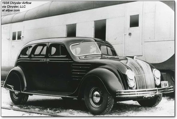 Az autógyártók az 1920-as években kezdtek felfigyelni a légellenállás csökkentésében rejlő lehetőségekre. Az amerikai Chrysler vállalta először egy áramvonalas autó nagy sorozatú gyártásában rejlő kockázatot – ennek az eredménye lett az Airflow, amely 1934-ben jelent meg. A siker ugyan elmaradt, de mára igazolódott, hogy az amerikai tervezők pontosan megérezték, merre fejlődik az autógyártás a következő bő nyolcvan évben.
