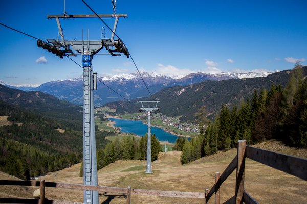 Weissensee egy igazi alpesi ékszerdoboz: gyanúsan tiszta vizű tó, felette zöldellő fenyvesek, aztán már csak a havas hegycsúcsok. És az utánozhatatlan legelő illat, ami arcon csapja az embert, amikor kinyitja az alakot. Két nap didergés és elázás után drámai életminőségváltozás történt, indultunk is fel a hegyre. A Naggler Alm 1330 méter magas, a bringapálya viszont a tó partjáig, 1000 méterig fut le. Az építők három kilométerre osztották el az esést, ami folyamatos lejtmenetben rengeteg, embernek és gépnek egyaránt.