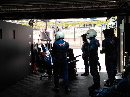 Újra pályán #35-ös Alpine, ennek örömére megmutatjuk, hogyan zajlik náluk egy bokszkiállás. Kicsivel korábban engedtek be minket, egyszerre mindkét kocsijuk kint járt. Azt mondják, forró az aszfalt, ezért nagyon oda kell figyelni a gumikra. Egy csapat nyolc szettből gazdálkodhat az egész hétvége alatt.