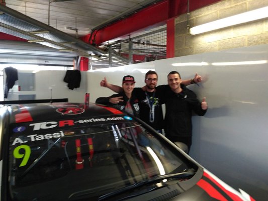 Ismerős mosoly a versenypálya szélén! Ha már úgyis itt vannak a TCR-esek, elhatároztuk, hogy megkeressük a M1RA csapatát. Meg is lettek: először találkoztam Michelisz Norbival, aki legalább annyira közvetlen és jó fej, mint amennyire gyors a pályán. Most csapatvezetőként figyelte az eseményeket, Tassi Attila pedig az első futamon harmadik lett. Nem véletlenül szólítják Attikának - nincs még egészen 18 éves. Viszont ő is olyan szerény srác mint Norbi. Egy félmosoly kíséretében annyit mondott, hogy az első futam valóban jól sikerült, de a második már kevésbé. Hajrá, Attika, Norbi, így tovább! Bocsi az életlen fotóért.