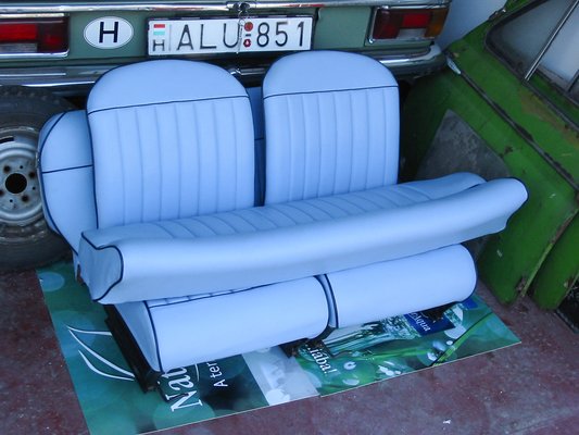 Sajnos a befejezés utáni napon a festék megrepedt az első csomagtérfedélen, ezért Karesz újrafújta. Persze, az egész ICI-tól hozott festékmennyiséget bekeverte előtte a kocsihoz, az megszáradt, ezért újat kellett készíttetnie a helyi festékesnél – arról az elemről a mai napig ordít, hogy a látrányi szakember még az én bácsimnál is kevésbé akarta elhinni, hogy valaki ennyire világos színt akarhat az autójára. Közben (másutt) elkészült a motor-váltó együttes is, a belső térrel szintén hatalmas kört futottam, mire F. Rezső elvállalta. Az üléseket csodásan megcsinálta, azóta is tartanak, jól is néznek ki, bár már elég koszosak, az ajtókárpitok már kevésbé sikerültek, azokat rögtön visszavittem, aztán megint, majd a reklamációs szélmalomcsatát megunva, a papundekli-vázat magam szabtam át kisebbre, újraragasztottam, majd később még egyszer még kisebbre, hogy végre beférjenek – most a méretük jó, de egy csomó patent kijött belőlük és alul lifegnek. Mindegy, évekkel későbbi sztori ahhoz képest, ahol tartunk.