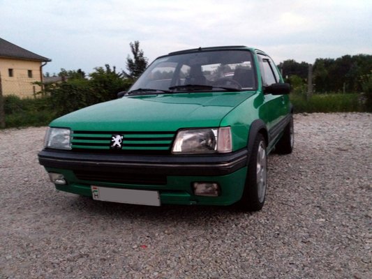 Amúgy abban, hogy így elment az idő, nagy szerepe volt Misinek, a másik szerelőálláson parkoló zöld 205-ös gazdájának is. Szabotőr, nincs rá jobb szó (ha olvasod, ne vedd komolyan!). Hiszen mit lehetne mondani egy olyan emberre, aki a bütykölés kellős közepén odajön, és megkérdezi, hogy van-e kedvem beülni egy körre a 200 lóerő fölötti T16-osába (oké, nem full replika, de T16-motoros). Volt kedvem, hogy a viharba ne lett volna? Saját kezűleg építette a gépet, és bárhogy próbálná, nem tudná letagadni, hogy szerelmes a típusba. Korábban az ő 205 Rallye-ját tesztelte Csikós – azóta már nincs meg, ez van helyette, és nem hiszem, hogy visszalépés lenne.