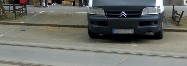 Bár a forgalomtól elzárt területet itt is felfestették – a képen a furgon ezen áll – de a mellette lévő területre már nem jutott festék, nincs mozgáskorlátozott piktogramot ábrázoló jelölés. Úgy gondolom, hogy minisztériumi rendeletben szereplő 50 ezer forintos büntetés nem kevés, amikor azt egy mozgáskorlátozott várakozóhelyen megálló járművezető részére kiszabják. Még akkor sem, ha sok helyen sajnos tudatosan állnak meg a szabálytalankodók.