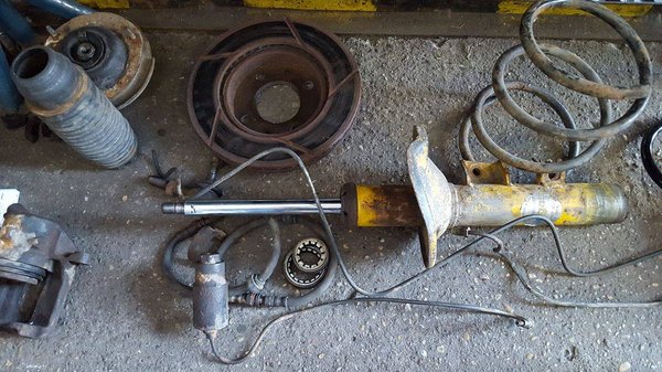 Összeszedtem az alkatrészeket Márk listája alapján, de nem volt könnyű dolgom. Ott volt mindjárt a lengéscsillapító. Amit először megrendeltünk, nem stimmelt, mert nem volt meg rajta a stabilizátor bekötési pontja. Ez baj, hiszen nyilván nem hagyhatjuk ki a stabilizátort, a gátlóra hegeszteni meg megint csak nem akartunk. Felmerült a felújítás, de mivel akkor még a kettővel ezelőtti szoros határidőt akartuk tartani, ez nem játszott. Az egész világot feltúrva végül úgy tűnt, Ádám és Tomi barátaim tudnak segíteni, ők egyszer már kihúztak a sárból a 205-össel. Bécsből jött a mondás szerint kifejezetten GTI-hez való cucc, de mire ideért, kiderült, hogy ebbe sem kötünk stabilizátort.