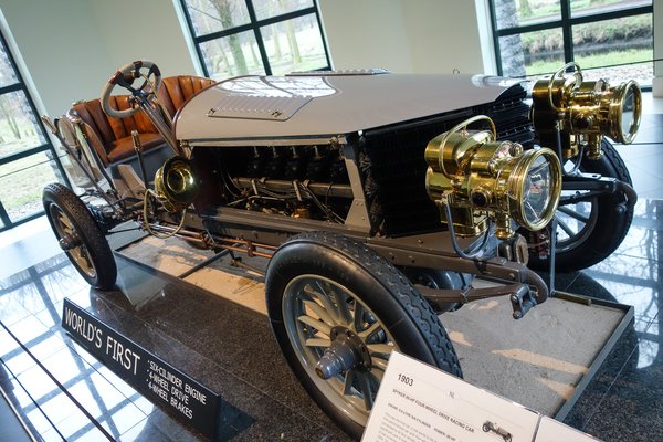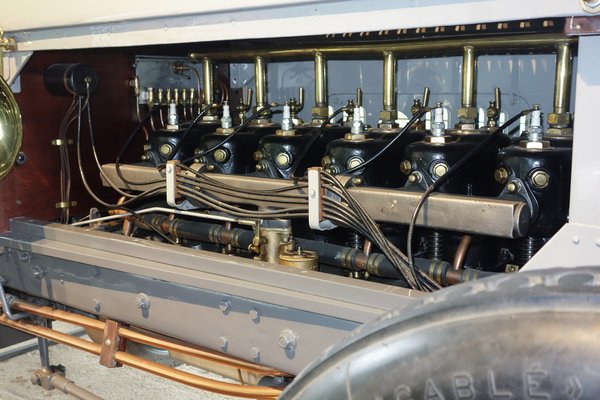 Elérkeztünk a harmadikhoz, ami a motor. Rendben van, a világújdonság hat henger nem egészen Spijkerék találmánya volt, ők csak felismerték, hogy az ütőképes versenyautó receptje a következő: gyorsuláshoz nagy tapadás, lassuláshoz hatékony fék, robbanékonysághoz erős motor és könnyű kaszni kell. Ez tehát itt az erős motor fejezet, melyhez jól jött, hogy a belga Joseph Valentin Laviolette alig korábban megtervezett egy 8,8 literes, soros, hathengeres, különálló zsákhengerekkel szerelt, oldalt szelepelt (látod mozogni a szelepszárakat és -rugókat működés közben), vízhűtéses motort – innen a 60/80 HP megnevezés: előbbi az adólóerő, utóbbi a valódi. Nem volt ez akkor nagyon nagy blokk, hiszen a múlt század eleje a korlátozás nélküli köbcentihajhászásról szólt, akkoriban 16-20-25 literes (igen, 16-25 ezer köbcentis) motorokat tettek minden gyors autóba, hiszen a fordulatszám-maximumok még 1200-1800 körül jártak - gondoljunk csak itt a két évvel ezelőtti Goodwood Festival of Speeden nyomuló, borzalmas Fiat S76-ra, vagy éppen a Blitzen-Benzre.