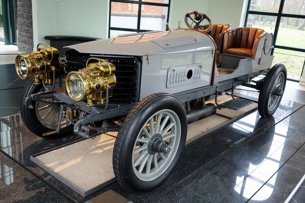 Bizony, a holland Spijker-fivérek – ugyanaz a két ember a régi, hintókészítő családból, akik 1898-ban azt a díszes, aranyozott batárt alkották Wilhelmina királyné megkoronázására, amit a királyi család azóta is használ, alkalmanként – szóval ezek a Spijker-fivérek az 1903-as Párizs-Madrid versenyre készítették a szürke autót. Zsenialitásukat mutatja, hogy bár az automobil még csak 17 éve létezett akkor, az autókészítők csupán két éve sejtették, hogy az autómotor helye a kocsi orrában van, a váltó és az utastér a mögé való, s a versenyautó-alkotók még mindenféle, borzalmas, nehéz és szerkezetileg alkalmatlan masztodonokkal kísérleteztek, Spijkerék már trakción, fékhatáson és jól lóerő/kg arányon gondolkoztak.