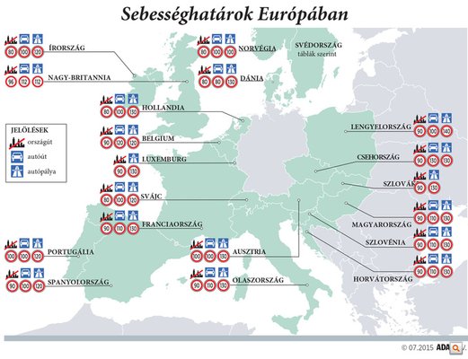 Érdemes szem előtt tartani, hogy nem minden országban egyformák a sebességhatárok, és egyéb kihágásokat is eltérő mértékben tolerálnak. A lakott területen érvényes 50 km/h túlnyomórészt mindenhol egyforma, országúton viszont Hollandiában, Dániában, Svájcban, Norvégiában vagy Írországban csak 80-nal mehetünk az itthon megszokott 90 helyett. A norvégok autópályán 100 km/h-t engednek, de a portugálok, spanyolok, belgák, svájciak is csak 120-at. Egyszóval érdemes indulás előtt megnézni ezeket az adatokat.
