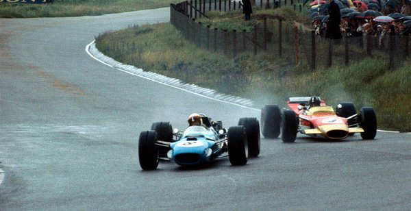 Ma 49 éve készült az alábbi fotó. A helyszín Zadvoort, az 1968-as holland nagydíj zajlik épp. Elöl az ekkor még nyeretlen Matra-Fordban Jackie Stewart, mögötte szorosan tapad Graham Hill a Lotusszal. Az esős futamon Hillé volt az első három kör, onnan viszont Stewart dominált, s végül simán nyert. Ez volt a Matra első Forma-1-es győzelme. Hill egy megcsúszás miatt ugyan kiesett a futamról a hajrában, de a szezont később nyerte Stewart előtt.