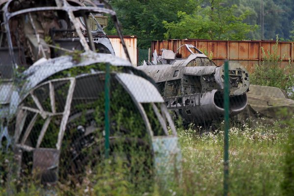 Egész jól haladtunk, de Valjevotól nem messze muszáj volt megállni, még akkor is, ha az addig kielőzött kamionok így visszaelőztek. Szerbiában rengeteg a bontó, az út menti roncsok is széles skálán mozognak kettes Golftól a Phateonig, de ez most kilógott a sorból, hosszú, áramvonalas géptörzsek rohadtak a gazban. Hogy mi lehet a telep célja, nem tudni, hiszen ki venne bontott alkatrészt forgalomból kivont katonai repülőhöz? A látvány ezzel együtt is megragadó: nincs hagyományos értelemben vett rozsda, a dúralumínium inkább csak eltűnik, alulról pedig hódítja vissza a természet a romokat. Az F86D Sabre Dog első darabjai 68 éve szálltak fel először, szinte ugyanakkor, mint a pár méterre álló Sikorsky S-55-ös helikopter. Nem ez volt az egyetlen ilyen telep, nem sokkal a montenegrói határ előtt is belefutottunk egybe, de mivel késésben voltunk, nem tudtunk megállni.