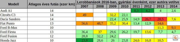 Kimondottan rossz értékelést egyetlen típus sem kapott ebben a kategóriában, de azért a Dacia Sanderónak és némi meglepetésre a Hyundai i20-nak is sikerült egy-két modellévben alulteljesítenie. A román márkánál gyújtás- és világításhibák mellett az önindító problémás, míg a koreai kiskocsi gyenge pontja a lambda-szonda. Érdekes módon a testvérmodellje, a Kia Rio nagyságrendekkel jobban teljesített.