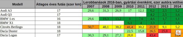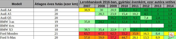 A német autóklub (ADAC) sem mindenható, nyilván véges mennyiségű adat áll rendelkezésükre. Autómentőiket azonban minden évben milliónyi lerobbanáshoz hívják, így elég komoly merítésből dolgoznak. A jelenlegi mérési módszert három éve alkalmazzák: a feljegyzett meghibásodásokat az adott típusból eladott darabszámhoz mérik. Az alábbi táblázatokban szereplő számok tehát azt mutatják meg, ezer autóból mennyivel adódott probléma. Emellett feltüntetik az egyes modellek átlagos éves futásteljesítményét is, de a korábbi évekkel ellentétben már nem korrigálják ezzel a műszaki hibák számát. A lista nem rangsort tükröz, az autók ábécésorrendben követik egymást.