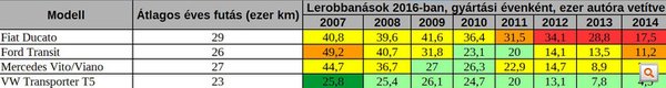 Mivel a felmérés a 2014-es modellévig nézte a lerobbanásokat, így a Volkswagen Transporter még az előző, T5-ös generációval szerepel. Simán le is nyomja minden versenytársát, bár a felhangosodó majd meghibásodó motorok, pusztuló turbók, elhulló féltengelyek réme kísérti a tulajokat. Ráadásul átlagosan a Transporterek futják a legkevesebbet az összehasonlításban szereplő modellek közül.
