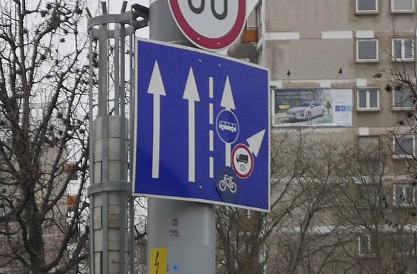 Érdekes megoldás, de mindenképpen szabályos, amikor az úttest közepénél alakítanak ki buszsávot, és a balra kanyarodást innen hajtjuk végre. (Ilyet találunk például a budapesti Tököli úton.) Ugyanakkor azt sem árt átismételni, hogy a kerékpárosok a buszsávot csak akkor vehetik igénybe, ha ezt külön kiegészítő tábla jelzi.