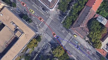 Miközben a helybéliek azt mondták nekem, hogy évente 5 hasonló, bár nem ennyire súlyos baleset történik ugyanitt, a forgalmi rendért, így a közlekedési lámpák működéséért és az elsőbbségi viszonyok meghatározásáért, illetve az útfestésekért felelős Budapest Közút Zrt. válasza szerint nem rendelkezik pontos baleseti statiszitkai adatokkal. Így nem csoda, hogy 2011-óta nem változtattak sem a lámparenden, sem a felfestéseken, és nem döntöttek úgy, hogy körforgalmat építenek ezen a csomóponton.