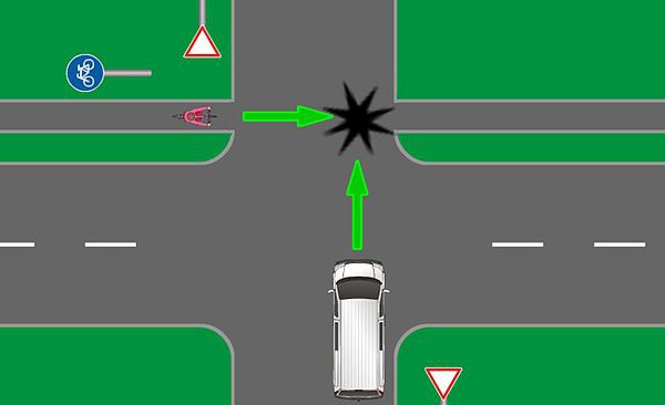 Ebből a pontból egyértelműen adódik az, hogy nem csak az úttesten, hanem a teljes útszélességen érkező járművek számára jár az elsőbbség, tehát azoknak is, akik a kerékpárúton közlekednek.