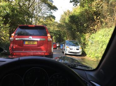 Land's Endről észalnyugatnak indultunk a Cotswolds nemzeti parkja felé. Bő 400 kilométert utaztunk, a javát esőben. Ültünk egy félórácskát dugóban, ami Angliában még a kisvárosokban is elég mindennapos, annyi az autó. Mi vallásosan Wazézunk mindenhova, ráadásul az egyikünk telefonjába vettünk egy helyi SIM-et, szinte végtelen adattal, a másikunk használja az otthonit, végre roamnigdíjak nélkül, és valamelyik mindig működik. Jellemzően meg is úsztuk a dugók nagyját.