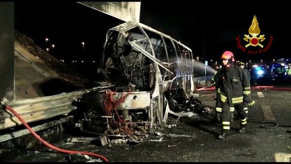 - Engedély nélkül üléseket és plusz üzemanyagtartályt szereltek a Veronánál kigyulladó magyar buszba – írja a 444. A lap egy most nyilvánosságra hozott jegyzőkönyvről ír, amely szerint a buszon nem kettő, hanem három tartály volt: elöl egy 160 és egy 320 literes, valamint a busz közepén egy 370 literes engedély nélkül beépített póttartály. Az ülések száma is szabálytalan volt, a szabályos 53 ülésen felül ugyanis szereltek bele még ötöt, de a Zoom.hu információ szerint mindezek mellett a sofőr is egy alvászavar miatti felfüggesztés lejárta után közvetlen került a busz kormánya mögé. (zoom.hu/444.hu)