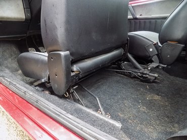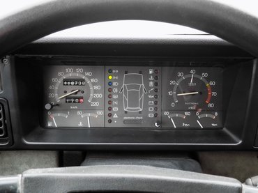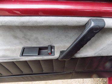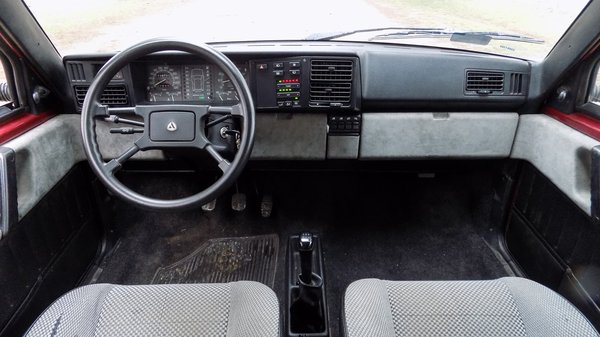 Az ajtókon és a műszerfal alján is körben alcanatara kárpitozás van, ami még ma is nagyképű kiegészítőnek számít. Még a rádió helyét is ilyen kellemes tapintású anyaggal borított ajtó mögött találjuk. A kesztyűtartó mérete bőséges, az ajtajában nemcsak tolltartó, de forgalmitartó is van, bár a műanyag olyannak tűnik, amit nagy hidegben nem piszkálnék, könnyen törhet. Erre bizonyíték, hogy a műszerfali csavarok könyékén több helyen is körbe van repedve az anyag itt-ott, óvatosabban kell itt bánni a csavarhúzóval, mint más autóknál. Az ablakok villanyosak, nemcsak az első kettőt mozgatják motorok, de a két kis hátsó billenőablakot is. 1985-ben ez nagy szó volt.