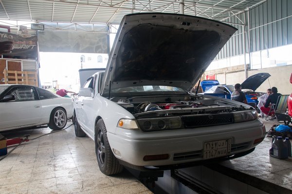 Az arab országok iparnegyedei ugyanúgy néznek ki, rend nincs, por ellenben van, ez mindenre húz egy finom selyemszerű réteget. Egyik ipartelep sem túl rendezett, csak az itthoni saras dzsuva hiányzik a romok alól, ami eső nélkül nem is nagyon lesz. A műhely Rafet El Jahjáé, aki hobbiból megnyerte a Red Bull Car Park Driftet 2017-ben, így megkapta a King of Drift címet a helyi autós szövetségtől. A két méter magas Rafet legalább 100 kiló, az arcán a soha nem szűnő vigyorral, mint a jólelkű mamlasz egy rajzfilmből.