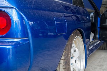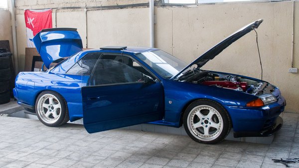 Formailag az R34 a legütősebb, de az R32 az évek során ordassá érett, ráadásul a Bayside Blue szín még egy Szaratov hűtőt is kívánatossá tenne. Ebbe az autóba már az R34-es, utolsó-szériás Skyline motorja van, nem azért, mert annyira különbözne az R32-esétől, csak ez tíz évvel fiatalabb. Mellesleg az autó eredetileg GT-S-ként kezdte, most költöztek bele a GT-R hajtás alkatrészei, az autentikus szélesítések még hátra vannak. Ománban nem lehet jobbkormányos autót forgalomba helyezni, ezért ezt is balosították, de úgy, hogy szétvágták a műszerfalat, átemelték balra kormányt és a műszereket, majd a jobbról hiányzó részt legyártották üvegszálból és bebőrőzték.