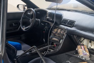 A hűtő a hátsó ülések helyére került, a hátsó tengely mögött viszont eléggé lekönnyítették a kasznit, ami nem üvegszál, az ementálira lyuggatott lemez. A gyári CA18-as turbós négyhengeresben is van vitamin, de Rafet driftautójába egy Toyota 2JZ-t épített, üzembiztosan tud 850 lóerőt, ráadásul nem valahol a sztratoszférában, hiszen már 3800-as fordulattól megjön a töltőnyomás. A váltó hatsebességes szekvenciális, a hajtáslánc vége pedig a szakágban elengedhetetlen kétutas sperrdiffi.
