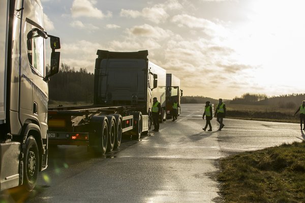 Egyórányira Stockholmtól nyugatra, egy fagyos, de csodás napos reggelen négy nyerges szerelvény hajt fel egy használaton kívüli repülőtéri futópályára, majd megállnak. Mindegyik tehergépkocsiban ül járművezető, de nem mindegyikük vezet. A futópálya ma a Scania legújabb félig önvezető tehergépkocsi-konvojozási kísérletének teszthelyszínéül szolgál.