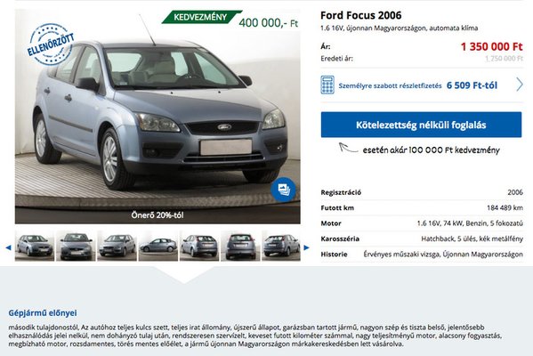 Az autót könnyű azonosítani. 1 millió 350 ezer forintot kérnek érte, és ebből az évjáratból, ebben a színben, ezzel a száz lóerős motorral csak ez az egy példány állt a telepen. A honlapon öt érvvel válaszolnak arra a kérdésre, hogy: Miért vásároljon használt autót az AAA Autónál? Az egyik az, hogy minden autó 107 paraméterét ellenőrzik. A kék Focus hirdetéseiben az összes ilyenkor fontos bullshitet leírták, mint: rozsdamentes és törésmentes előélet, garázsban tartott, nagy teljesítményű motor, újszerű állapot és így tovább. A kedvencem: "keveset futott kilométer számmal".