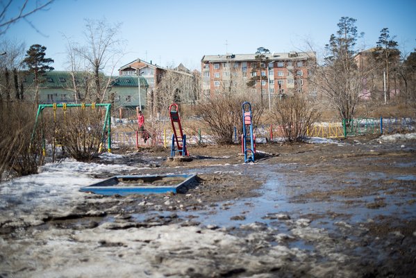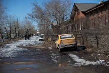A vasút ma is uralja a várost, rengeteg vágány vágja ketté, a legtöbb vagon fát vagy szenet visz. A vasút alatti aluljáróban sokan kelnek át gyalog, ez az igazi életveszély: a fekete mocsok lehet aszfalt, de jég is. És többnyire jég. Kutyaszar speciel nincs, de a vasúttól északra még elszomorítóbb ilyenkor a város, mint a túloldalon. Olyan sáros mocsok van mindenütt, amilyet városban még nem láttam, a parkok úgy néznek ki, mint valami extrém katonai kiképzőpálya a büntetőzászlóaljnál. Ezzel együtt Ulan-Ude egyáltalán nem olyan nyomasztó, mint Moszkva, inkább cuki, mint azok a szibériai települések, amiket akorábbi Mazda-kalandtúrán láttam. Nem is rossz egy olyan várostól, melynek egyetlen nevezetessége egy marha nagy Lenin-fej.