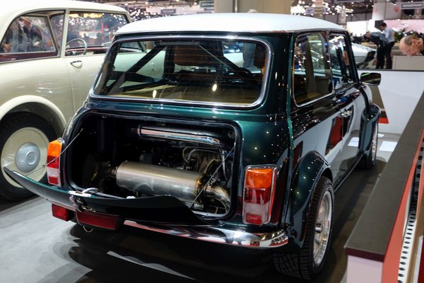 Három apróság is áll a stand végében, egyet könnyű felismerni – hisz ez egy Mini! De nem akármilyen Mini az. Ennek épp most van a hivatalos világpremierje, és az a neve: Meanie, merthogy a mean angolul ugye, gonoszt jelent, tehát ez itt Gonoszka. Miért e név vajon?