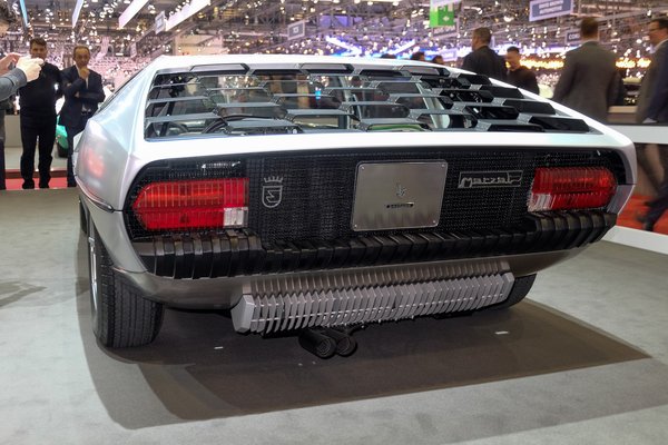 A Marzalt a Bertone-stúdióban dolgozó Marcello Gandini tervezte, ugyanaz a csávó, aki például a Miurát, a Countach-t vagy éppenséggel az Espadát is – utóbbi lényegében a Marzal újragondolásaként született. Két, hatalmas, felfelé nyíló szárnyas ajtót tervezett rá, amelyek könnyű bejutást engedtek a négy, ezüstszínű sky-jal bevont kagylóüléshez. Óriási kerekek, lapos, pingpongasztal-orr, hátsó szélvédő helyett zsalu – hiszen alatta, a farban lakik a motor, kell neki a lég.