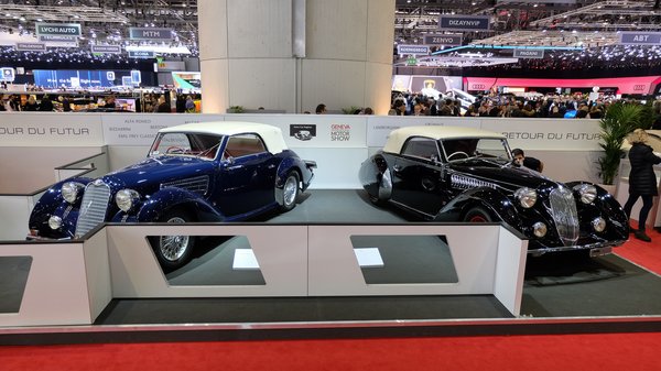 A stand távoli, folyosón túli részén áll még két autó. Nagyon öregek, mindketten Alfa Romeók, s a nyolcvan évvel ezelőtti szalonon ácsorogtak a genfi szalonon – igen, épp ez a két példány. Az egyik – a fekete - egy teljesen közönséges Alfa 6C 2300-as.