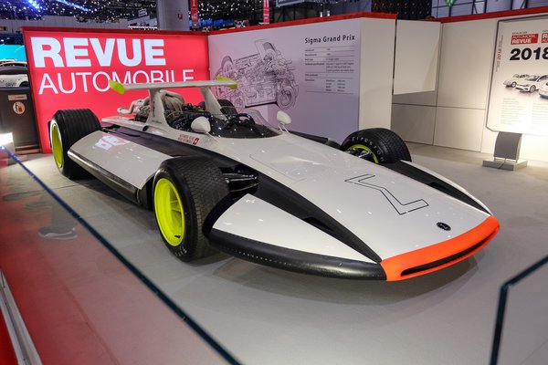 Itt van egy másik nagy formatervi kedvencem is, alig két standdal odébb, ezúttal nem a Bertone-, hanem a Pininfarina-stúdió munkája. A Sigma Grand Prix az, 1969-ből, egy olyan designstúdiós Formula-1-versenyautó, amelyről pillanatokig állítólag el is hitték, hogy versenyezni fog. Ja, persze a svájci fő autósújság, az Automobile Revue standján áll.